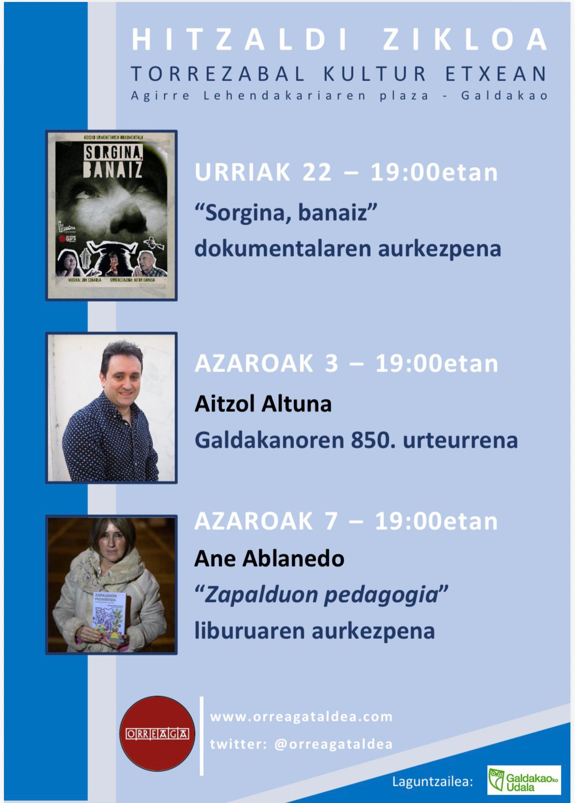 Hirurak izango dira Galdakaoko Torrezabal kultur etxean eta hementxe daukazue laburpen gisako afixa: